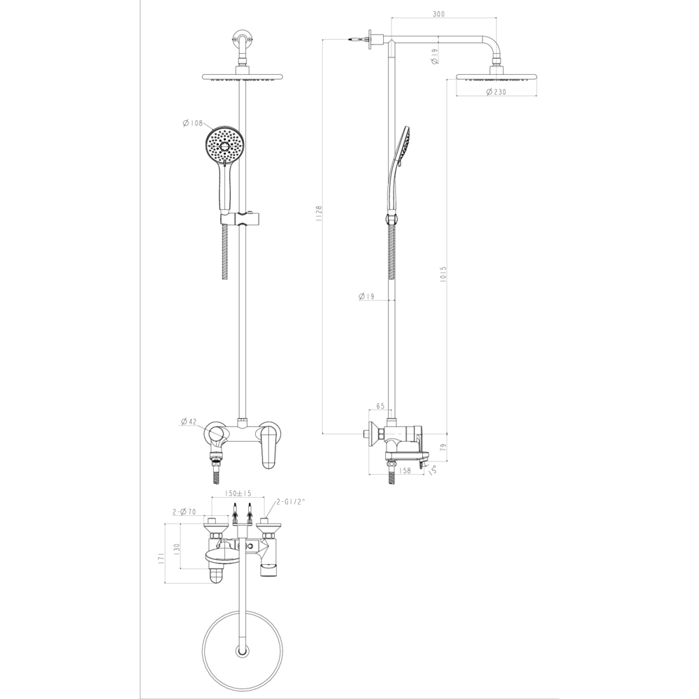 Simplica Rainshower System 3-way